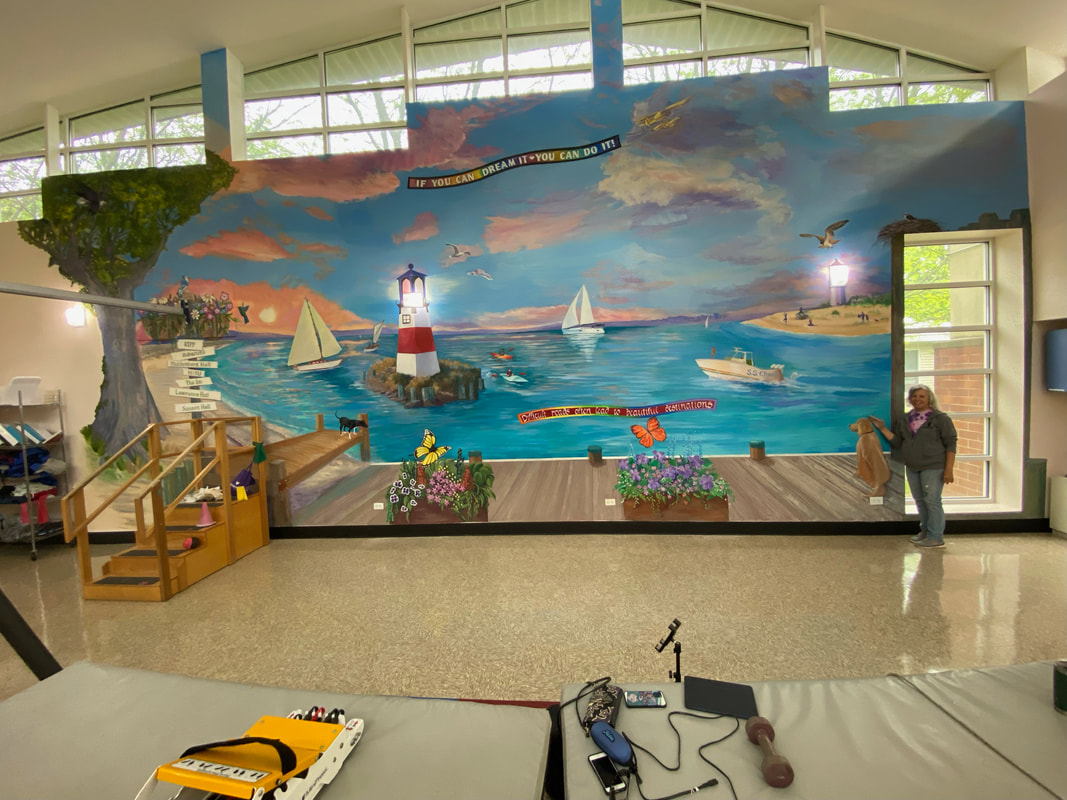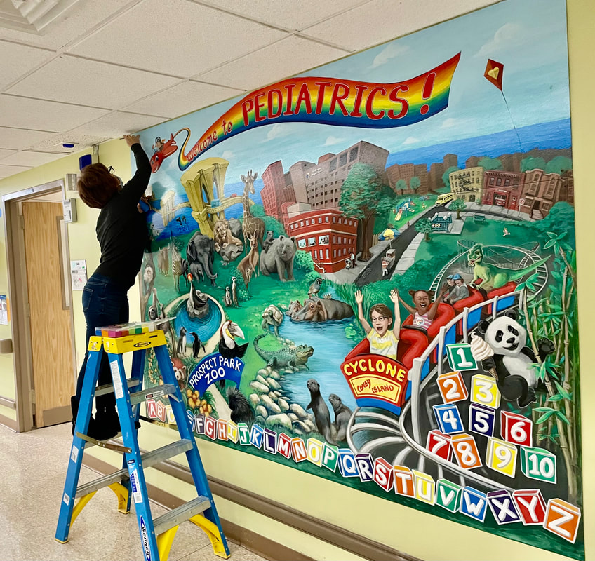 Splashes of Hope was founded in 1996 by Heather Buggée in reaction to her own experience in typical, dreary medical settings. During her art school years, Heather had a friend who was afflicted with Hodgkin’s Disease being treated in a local hospital. They discussed ways to improve the hospital’s aesthetics. Their idea that positive imagery would improve a patient’s outlook to support the healing process, was the genesis of Splashes of Hope.