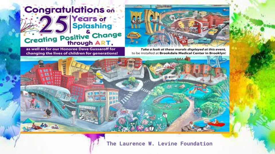 Splashes of Hope recently held our 25th anniversary fundraiser gala at Coindre Hall. The evening’s honoree, Dave Gussaroff, is a longtime resident of Lloyd Harbor and dedicated supporter of our nonprofit organization which creates artwork to transform medical and social service centers into welcoming, positive environments for patients and staff, personalize living spaces for homebound children with medical challenges, and brighten neighborhoods and communities.
