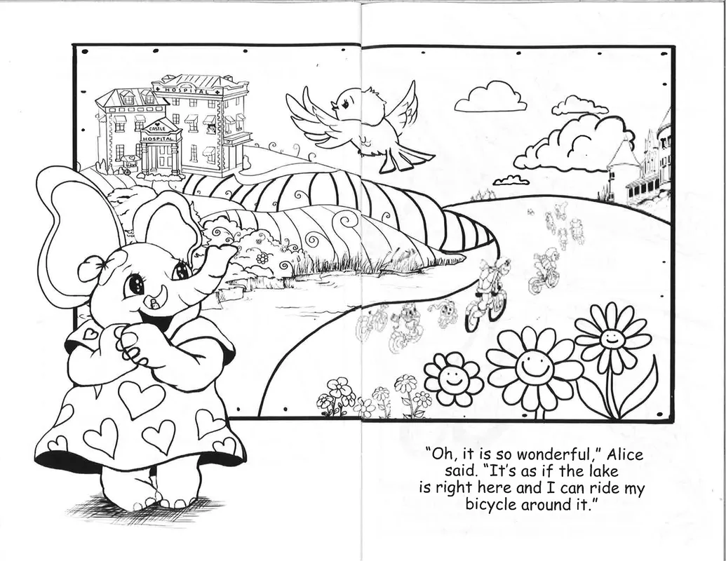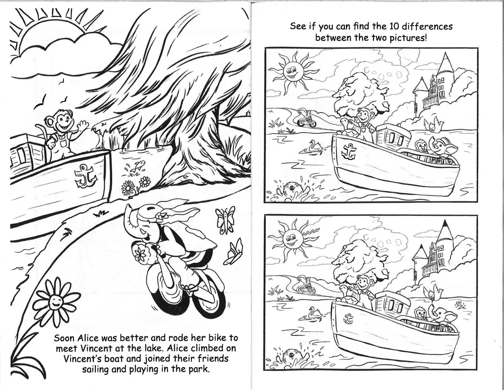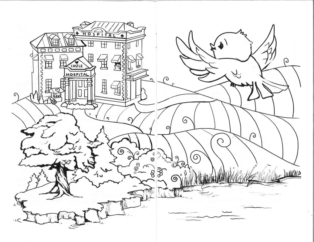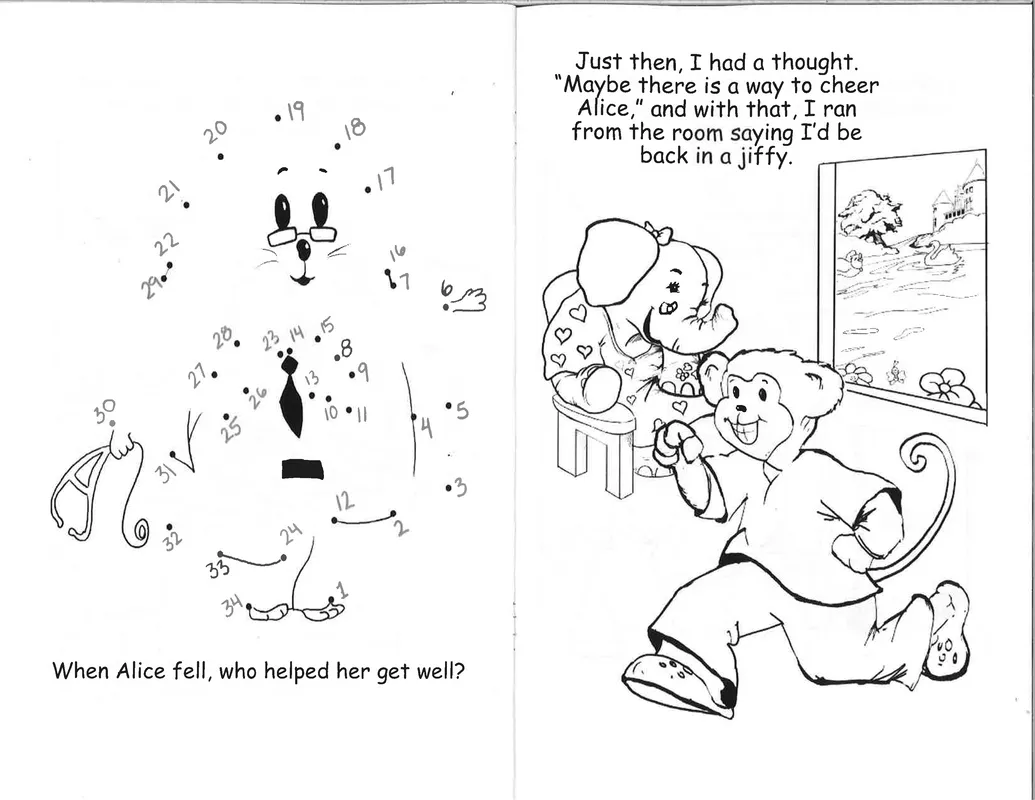 Created by Splashes of Hope artists - Friend on the Mend is a custom coloring book for pediatric patients in hospitals. Friend on the Mend tells the story of Alice the Elephant, whose trip to the hospital after a fall from her bike is greatly improved when her friend Vincent Van Monkey paints her a mural. The book depicts what children will see in the medical environment, for children to acclimate and feel comfortable.